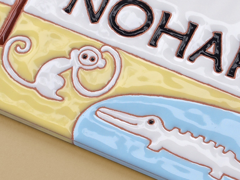 カラフルなベースに、池の中と外に、それぞれお好きな動物の絵柄を自由にチョイスしてあなただけのストーリーを作ってください。ご家族で我が家の表札をデザインしませんか。